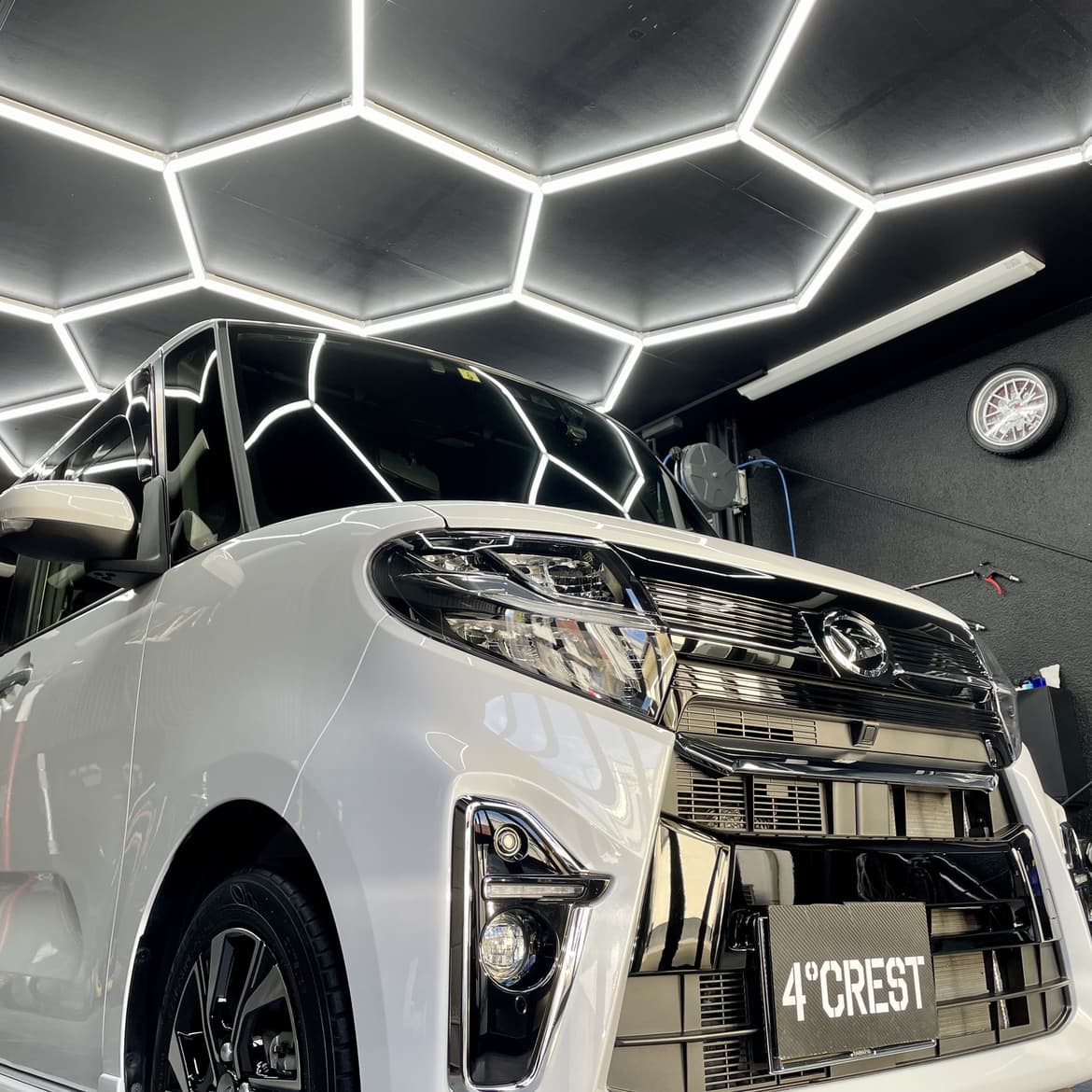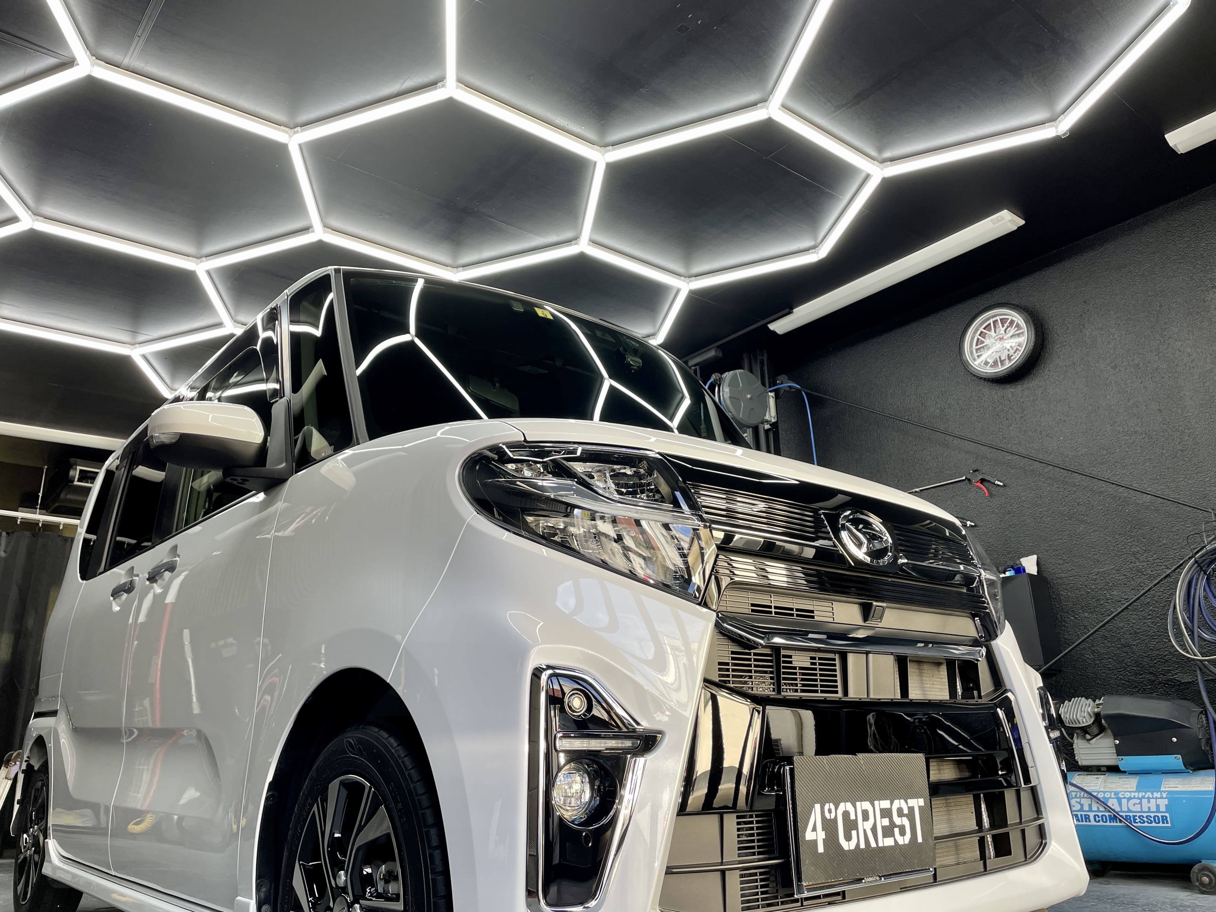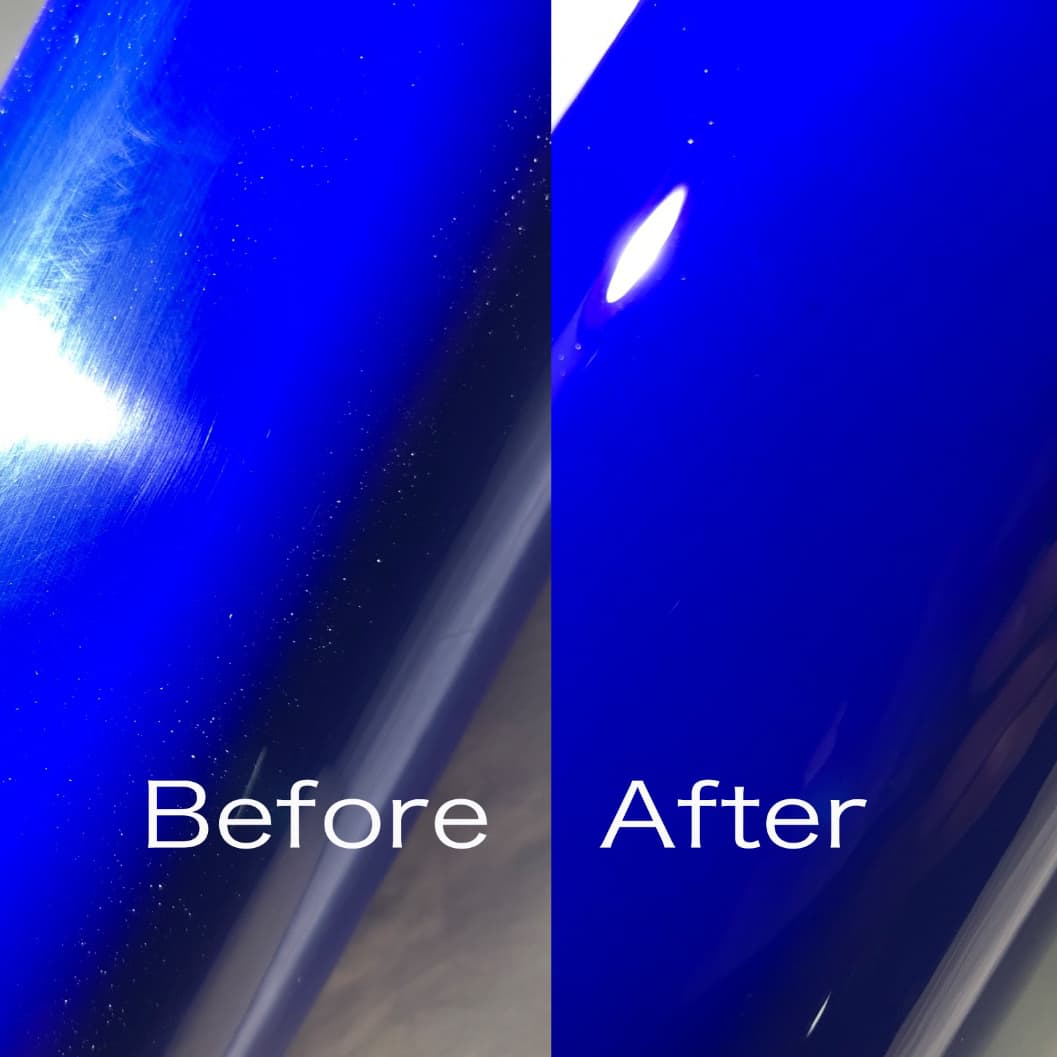塗装の厚みは限られています。平均すると100ミクロンちょっと一般的なコピー用紙より少し厚いぐらいです。ですからクレストヨンドでは鈑金塗装屋さんが使うような粗いコンパウンドは使用しておりません。深い傷を無理に取ろうとしませんし、浅い傷も素早く取ろうとはしていません。出来るだけ均一で細かい粒子の基本的にはノンシリコン、ノンワックスで塗装や、その上に施工するコーティング剤に悪い影響を及ぼさないコンパウンドを使用してじっくり磨いていきます。こだわりの先にある輝きを求めて、、、。