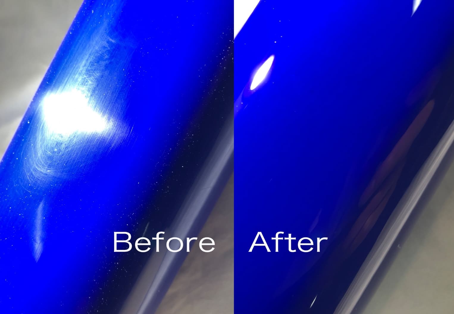 工場のラインで塗装されたばかりのボディパネルは、出荷された時から少しづつ傷が入っていきます。砂埃、飛んで来る虫、車は走れば傷が付きます。洗車でも傷や水垢が付きます。タオルで拭く時にも傷が付きます。雨が降れば水垢がつきます。悲しいですがこれが現実です。日々輝きが落ちていくのです。でもそれらは100%とは言いませんが、かなりの程度リカバリーができます。